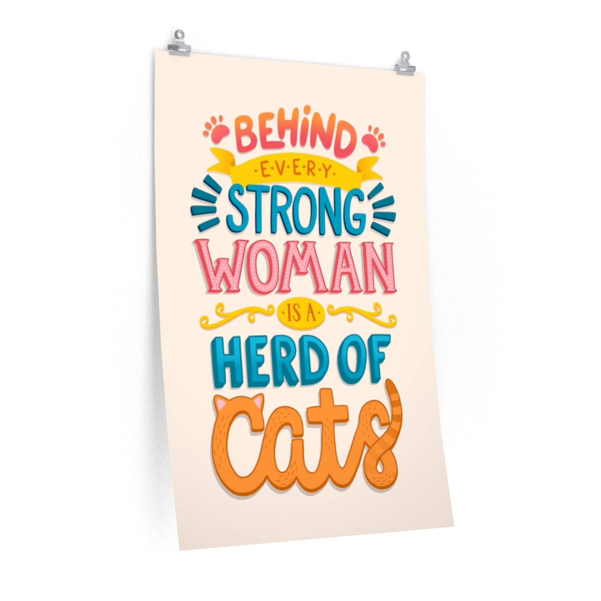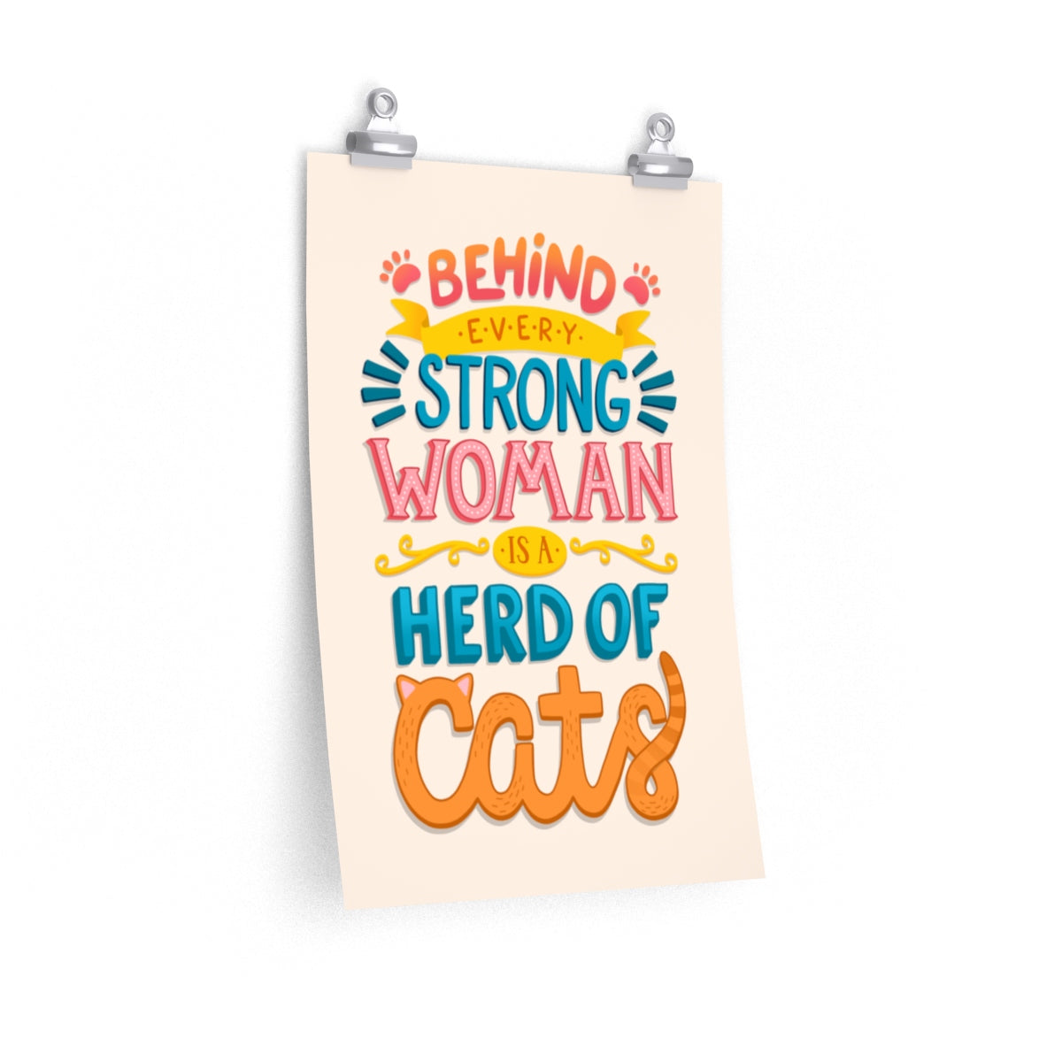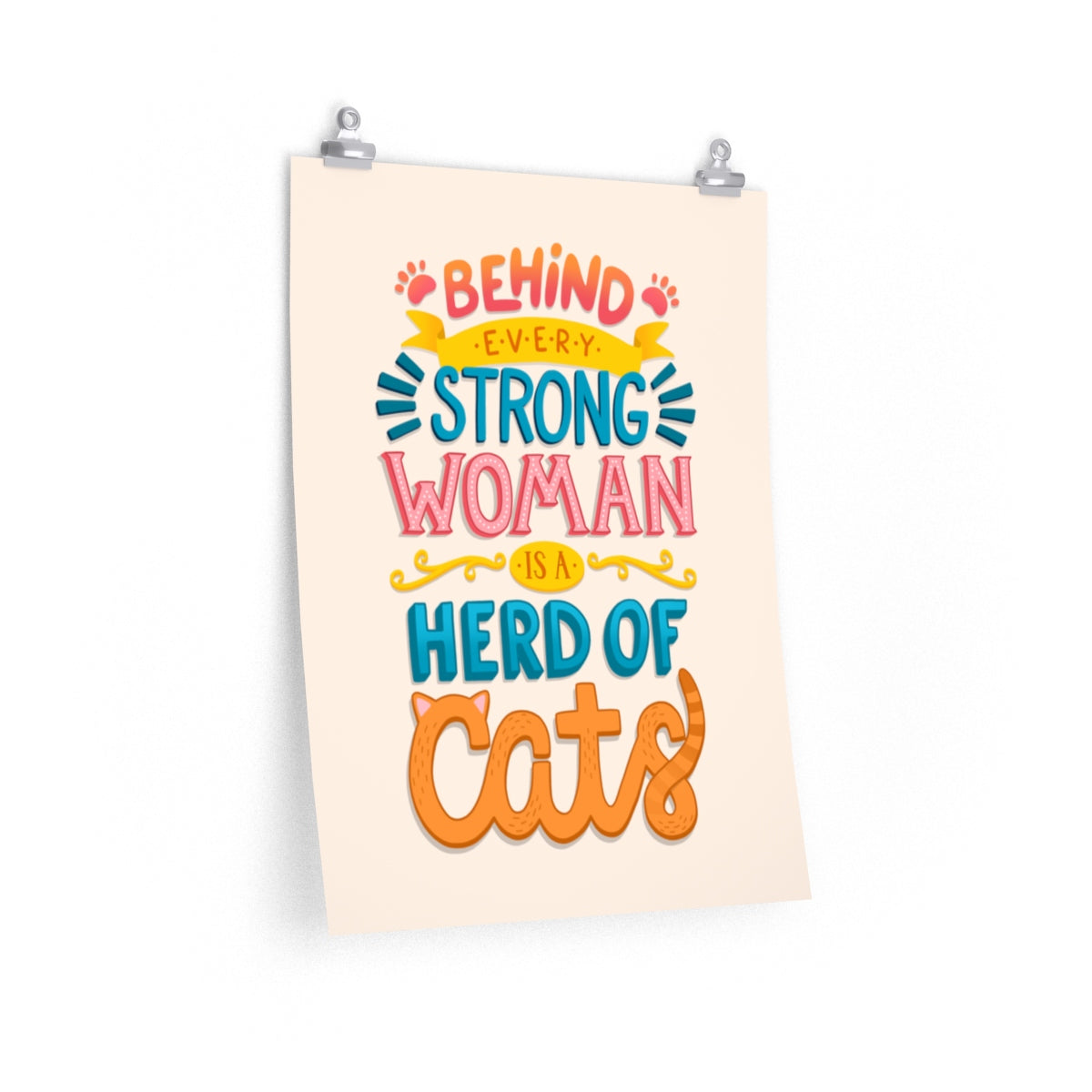 Behind every strong woman, there is a herd of cats! If you’re a strong, independent woman who also happens to be a crazy cat lady, you know this statement to be true. Our Strong Woman Cat Poster is a fun mix of feminism and felines, the PURRfect fit for cat ladies who aren't afraid to make a statement. So why not add a bit of purr-sonality to your room with a fresh, new poster?  Featuring a bold, colorful graphic print, this chic activist cat poster is the purrfect way to add a bit of spice and personality to your room, be it dorm room or bedroom! Each Strong Woman Cat Poster features a gallery-quality print on natural white, matte archival paper; meaning your poster can be displayed without worries of fading or yellowing with age. Our posters are printed with pigmented archival inks, guaranteeing a bright and illuminating print that will not fade due to sunlight exposure. Our Strong Woman Cat Poster makes a purrfect statement piece for any room!