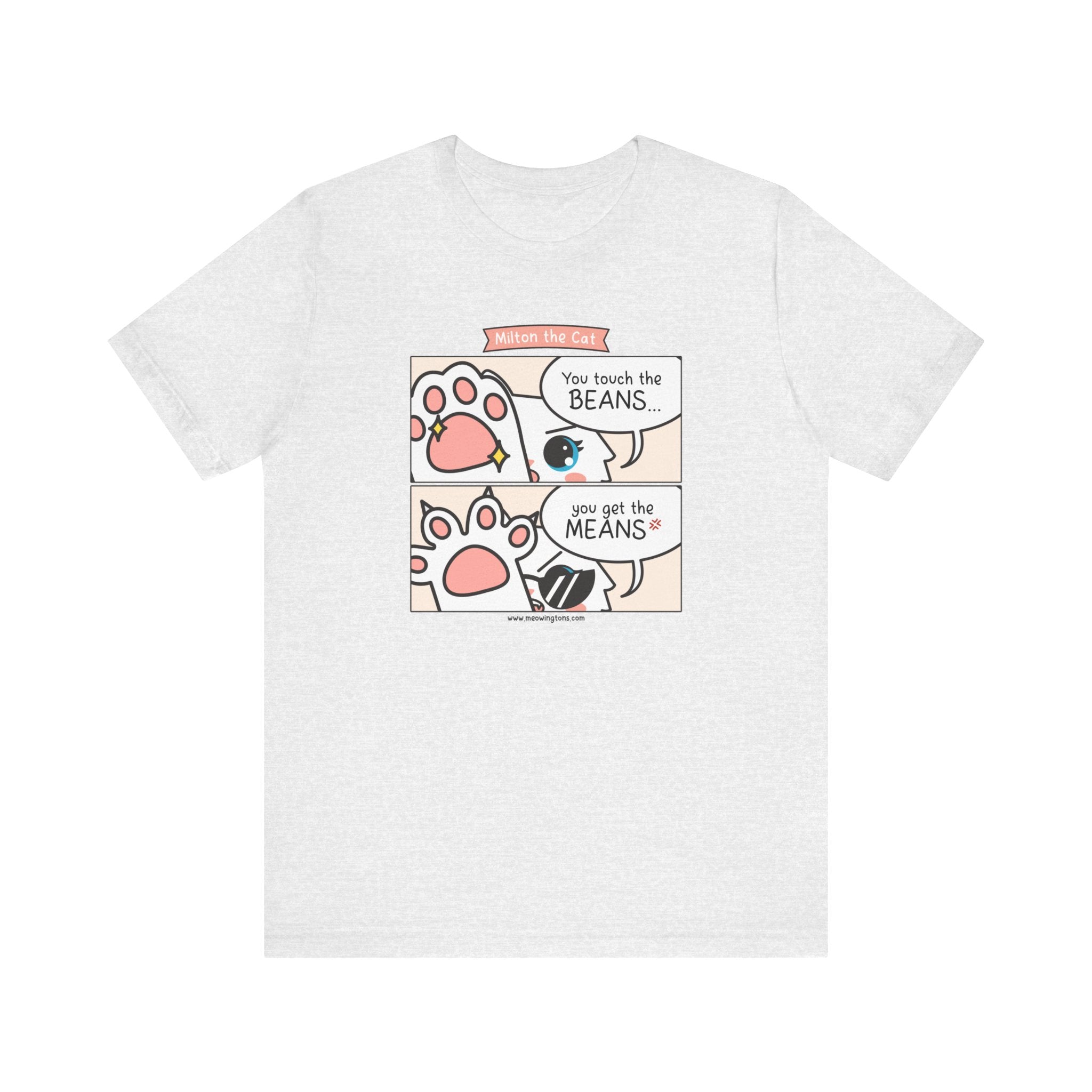 Whether you're lounging at home, running errands, or hanging out with friends, this versatile unisex tee is the perfect addition to any casual outfit. With a comfortable fit and a design that exudes personality, the Touch The Beans & Get The Means Comic Unisex T-Shirt is sure to become a wardrobe favorite for cat lovers of all ages.