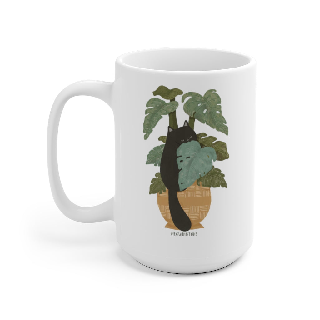 If you’re on the prowl for a mug to celebrate your love for cats and plants, the Tropical Jungle Cats & Plants Mug has the best of both! This cat mug features a hand-illustrated black cat munching away on a monstera leaf. Rendered in the rich, soothing greens of the jungle and soft, earthy textures for a unique illustrative style, this mug is sure to become a fast favorite for cat lovers and plant lovers alike.