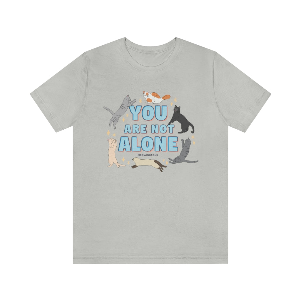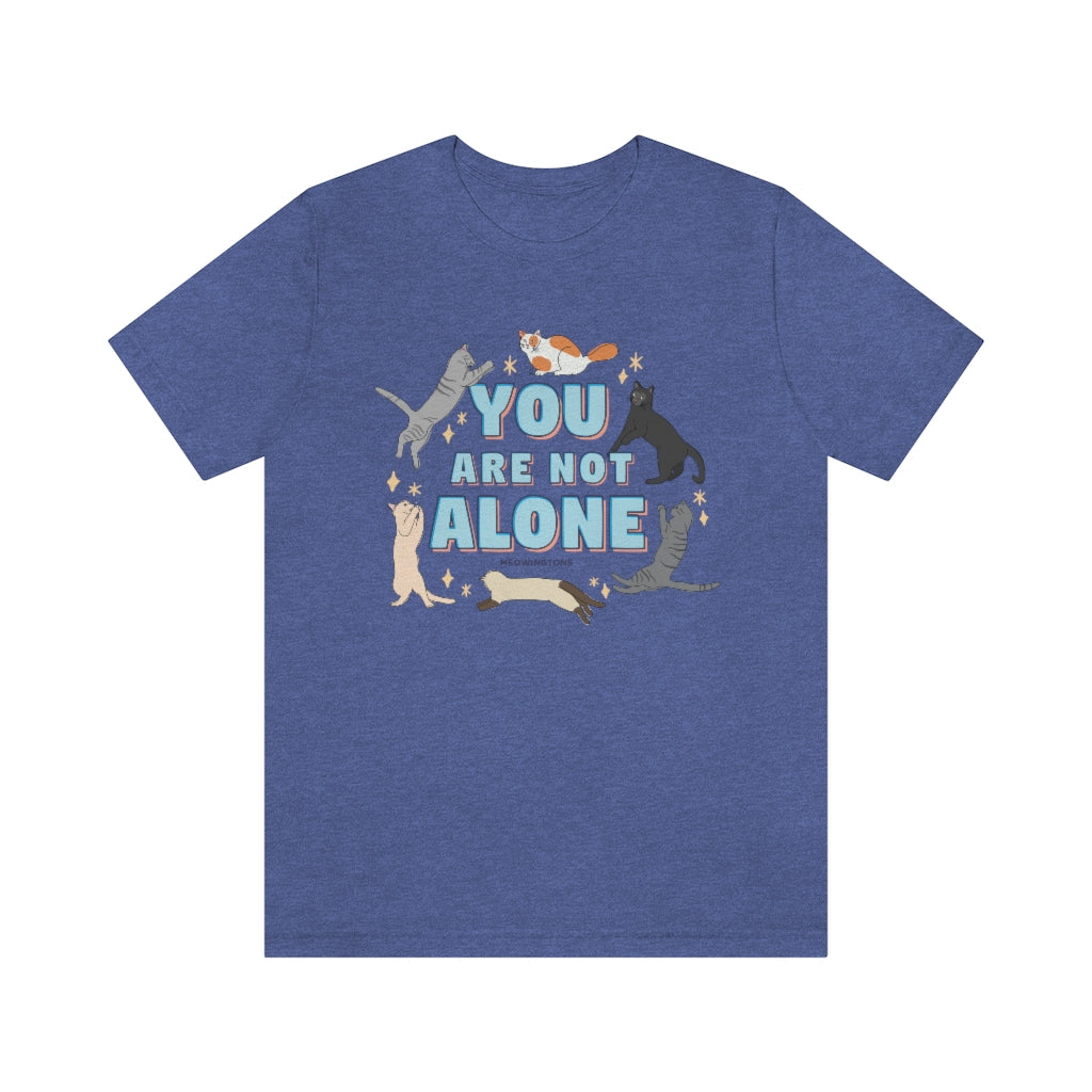 Our You Are Not Alone Cat T-Shirt is a two-fold message: You're not alone in your struggles with mental health issues, and you are never alone if you have cats!